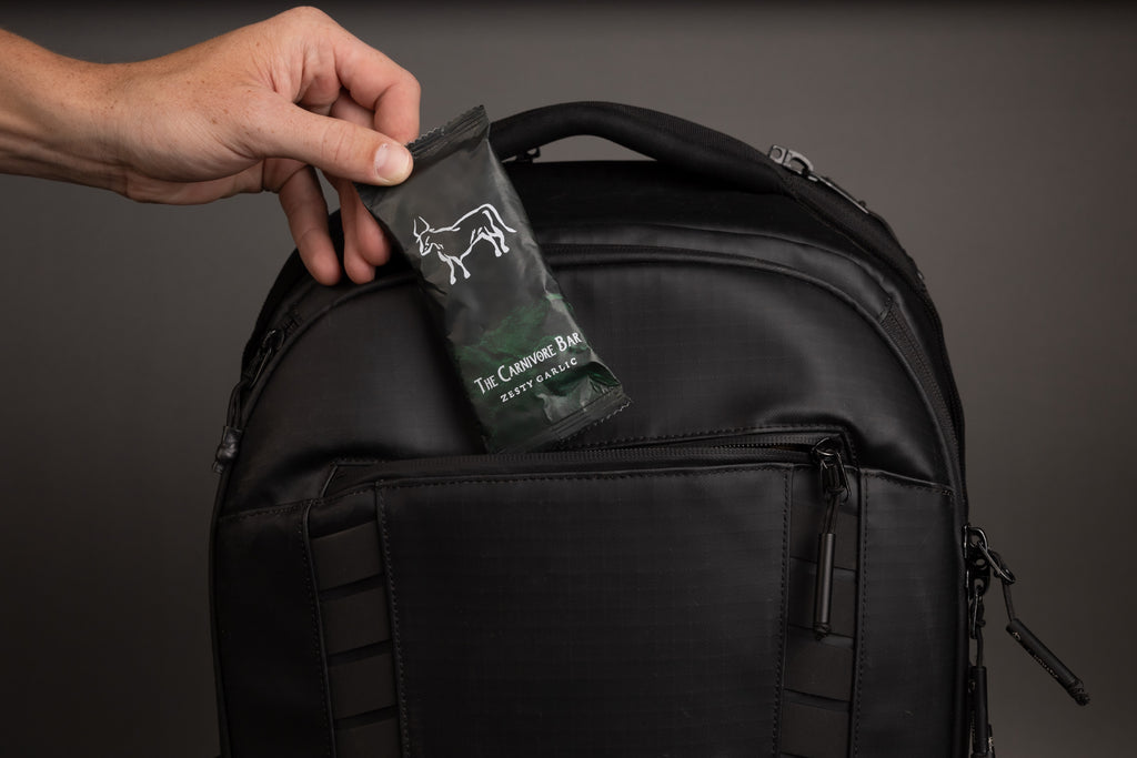 Shelf stable and portable, compact enough to take on any trip, including air travel | Also shelf stable and portable, must carry higher quantity for same amount of calories as a Carnivore Bar |